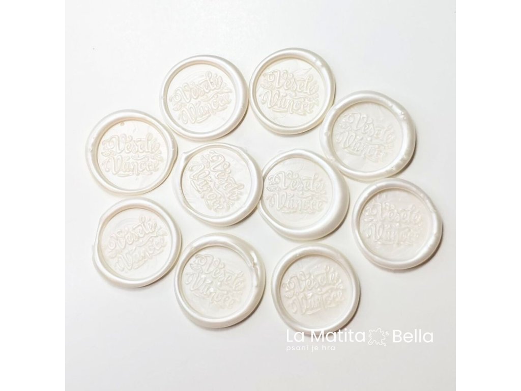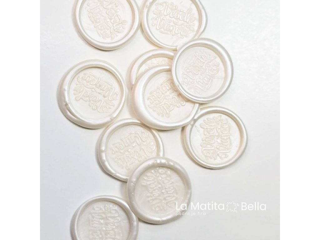 Každý kus vznikl ručně – drobné odchylky v tvaru i perleti jsou záměrně zachovány, aby každá pečeť byla jedinečná.