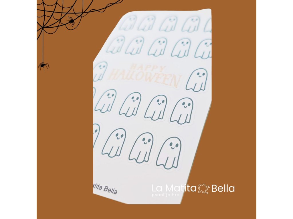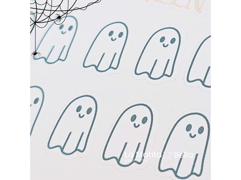 Malý aršík plný roztomilých (a trochu rozpustilých) duchů a nápisů Halloween v šedomodré variantě, který tvému diáři, balíčkům nebo přání dodá sváteční kouzlo i špetku nadsázky.